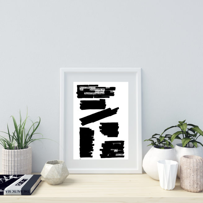 MS1 Redactives are poems created from the redaction of print media. This print is 8 in x 10 in, pre-matted to 11 in x 14 in.