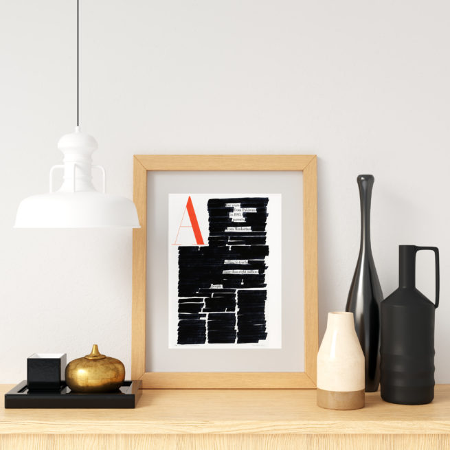 MS1 Redactives are poems created from the redaction of print media. This print is 8in x 10in, pre-matted to 11 in x 14 in.